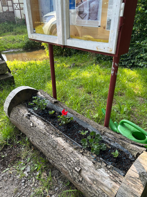 Da unsere Bepflanzung am Schaukasten an der Brücke seltsamerweise abhanden gekommen war, hier jetzt Versuch Nummer 2.