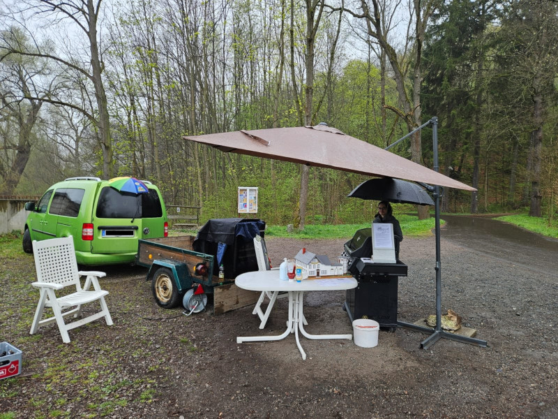 Osterzeit ist Stauzeit auf den Autobahnen. Wer dieses Jahr wieder zu Ostern unterwegs war und die Autobahn wegen den kilometerlangen Staus verlassen musste, kommt meistens an unserer Brücke vorbei. Deshalb entstand die Idee, für die hungrigen Autofahrer und Besucher einen kleinen Imbiss zu organisieren. Gesagt, getan. Trotz des schlechten Wetters, wurde das Angebot gut angenommen. Frohe Ostern!